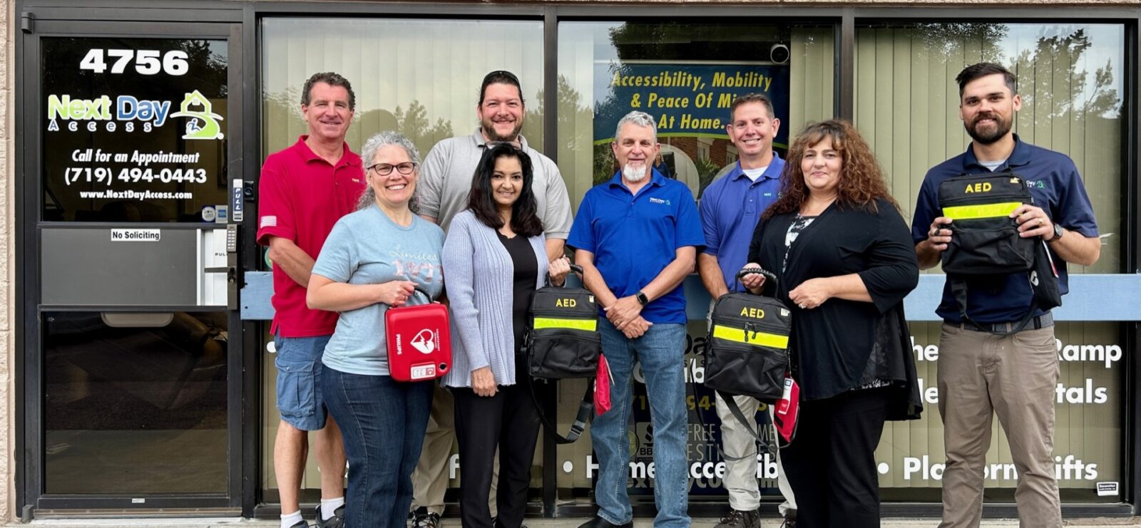 “We are in the business of helping people, specifically people with health complications,” said David Beiner, CEO of Next Day Access Colorado Springs. “If we can offer another way to provide safety, we want to be able to do so. The technicians, office staff, and myself are equipped with the AEDs, whether on the road or at the office.”